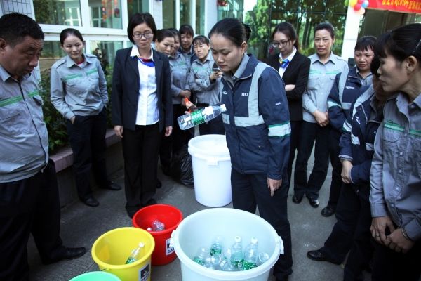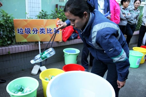 一聲令下,只見保潔員戴婉蟬快速拿起火鉗投入比賽,短短的1分鐘內(nèi),她準確無誤地區(qū)分出33種不同種類的“垃圾”,并分別裝進標有“回收垃圾”、“廚余垃圾”和“有毒有害垃圾”的桶內(nèi),整個過程一氣呵成,贏得現(xiàn)場觀眾掌聲連連。